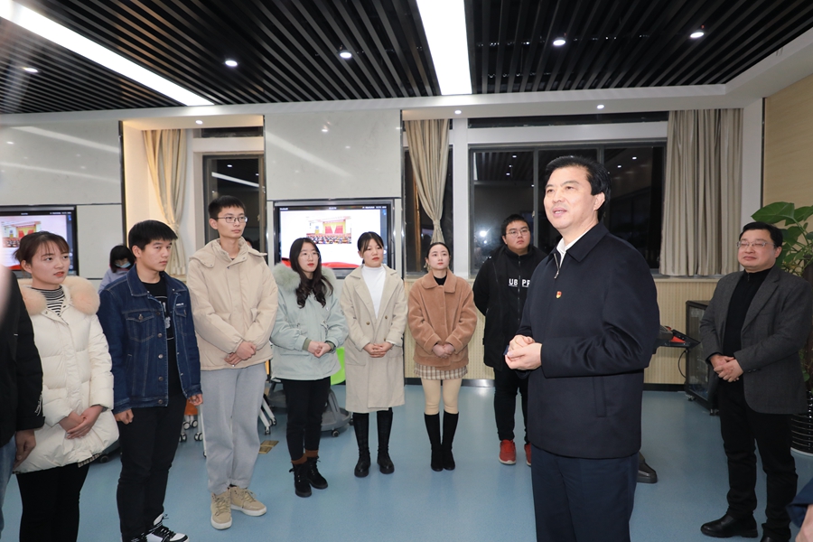 陶明倫還實地調研安徽省高校網絡思想政治工作中心,與大學生代表現場互動交流,分別就 “如何才能把黨的創新理論學得更好”、“如何才能成為一名合格的‘時代新人’”、“如何投身到文化強國建設中來”等學生們關心的問題一一給予解答。